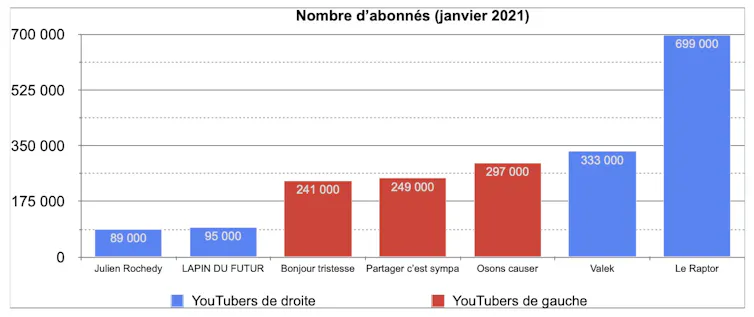 Ces chiffres sont impressionnants comparés à des chaînes YouTube de médias institutionnels, tels que TF1 qui possède 251.000 abonnés et dont les vidéos ne dépassent que rarement le million de vues. Cependant, cette visibilité des suprémacistes doit être relativisée et comparée à des chaînes identifiées à gauche sur YouTube.
